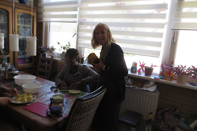 Roti! So delicious, and he even made a vegetarian option (with chickpeas- coongries or something in Surinaams tongo dialect). It was a really cool appt. because R and their other daughter N who weren't always so pleased with A joining the church are really opening up to us and we had a great, uplifting time, I really love that family!
